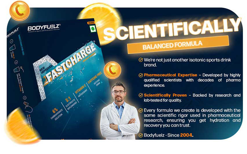 Fuel your fitness journey with Bodyfeulz Fastcharge, the trusted sports hydration formula backed by science and preferred by coaches, trainers, and athletes across India. Stay hydrated, stay energized, and stay ahead.